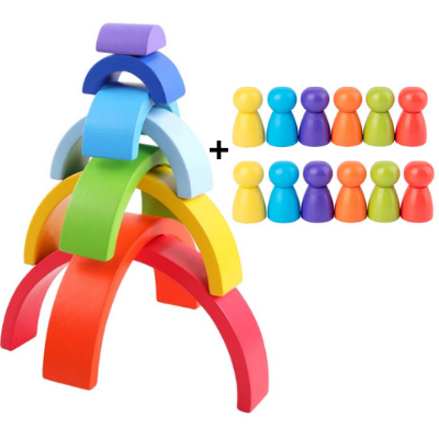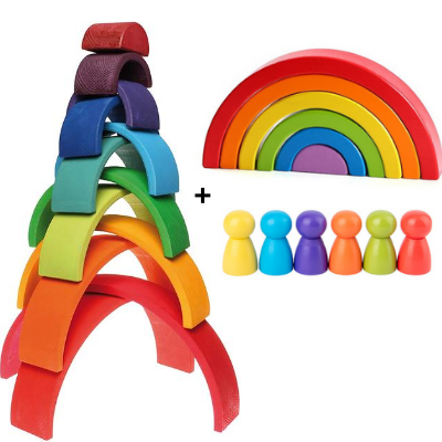 The arches of different sizes can be stacked and balanced to build bridges, gnome houses, colorful geometric patterns, etc. This stimulates your child's design ability.