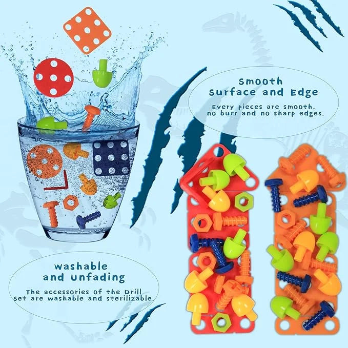 Thanks to a selection of colorful and robust pieces, as well as an electric drill specially designed for children, youngsters can engage in screwing and unscrewing, thus developing their motor skills while deepening their understanding of the technical world.